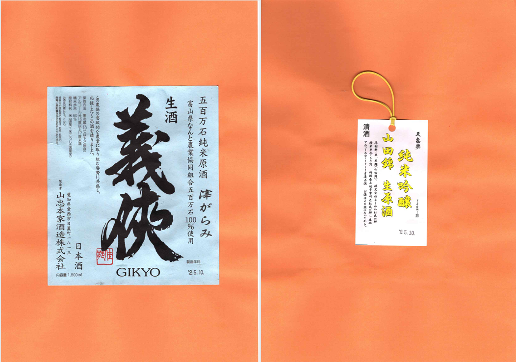 「酒の間」の山忠本家酒造「義侠」ラベルに追加、よしかわ杜氏の郷「よしかわ杜氏」ラベルを追加しました。