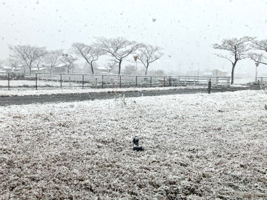 面会に向かおうとしたら・・・うっすらと積もっている。