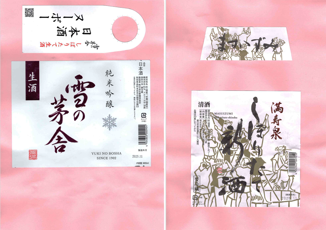 「酒の間」の齋彌酒造店「雪の茅舎」ラベルと桝田酒造店「満寿泉」ラベルに追加しました。