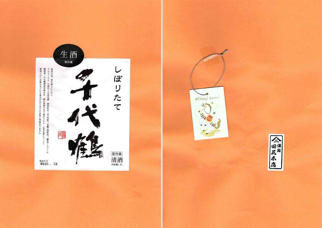 「酒の間」の千代鶴酒造「千代鶴」ラベルと桝田酒造店「満寿泉」ラベルに追加しました。