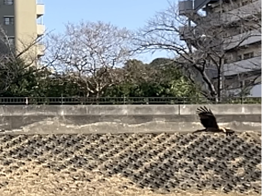 トンビとカラスが一緒に飛んでいる所は写せませんでしたが、トンビが飛んでいる所。