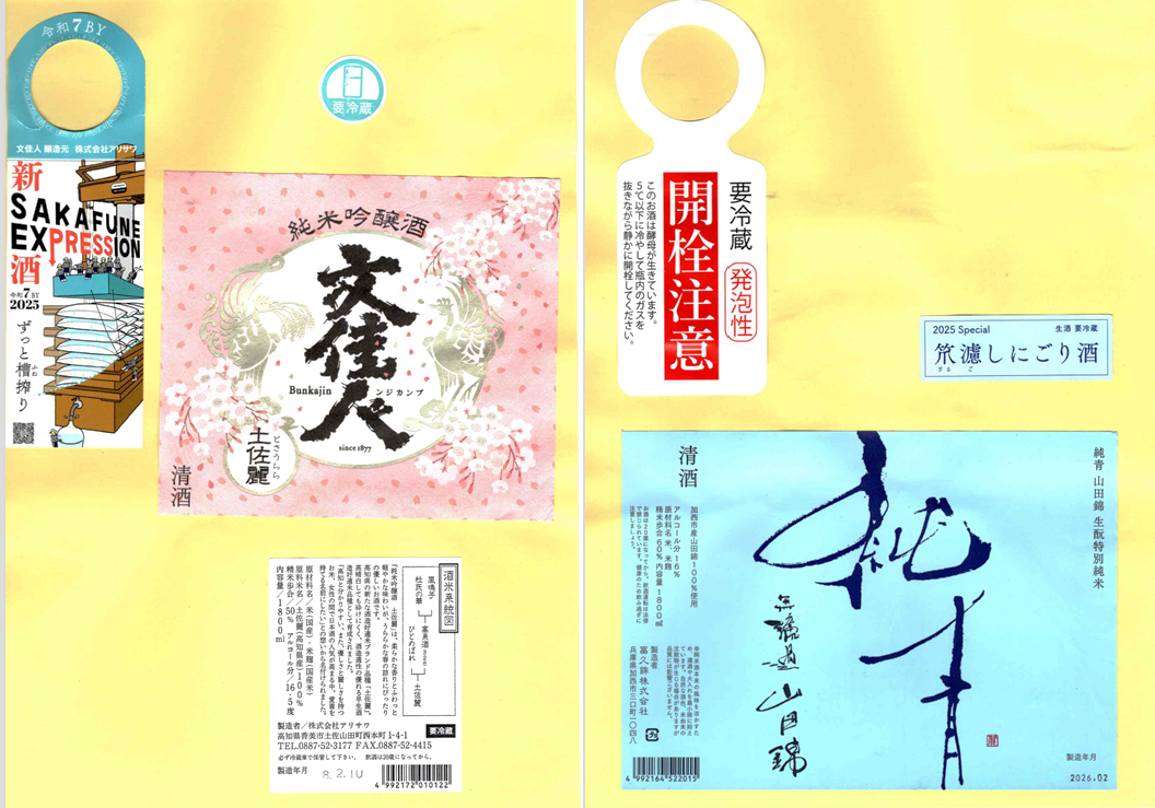 「酒の間」のアリサワ「文佳人」ラベルと富久錦「富久錦」ラベルに追加しました。
