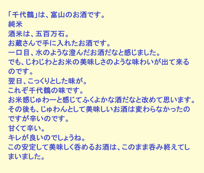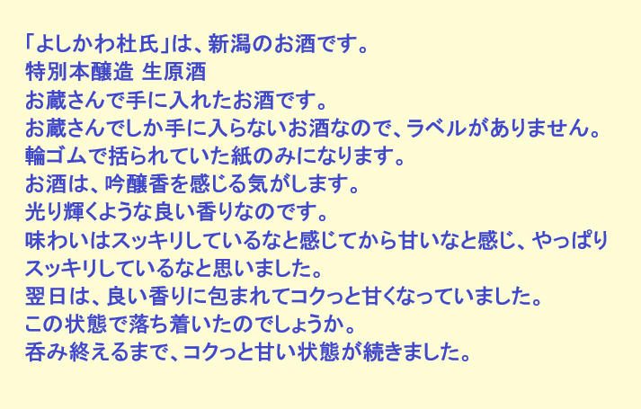 新しく開けたお酒:よしかわ杜氏(新潟)