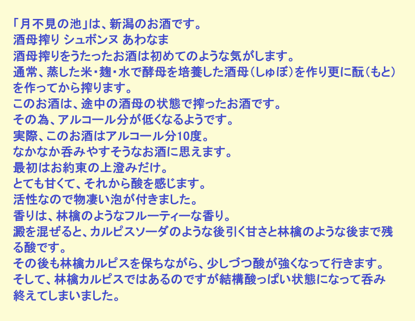 新しく開けたお酒:月不見の池(新潟)