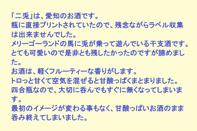 新しく開けたお酒:二兎(愛知)