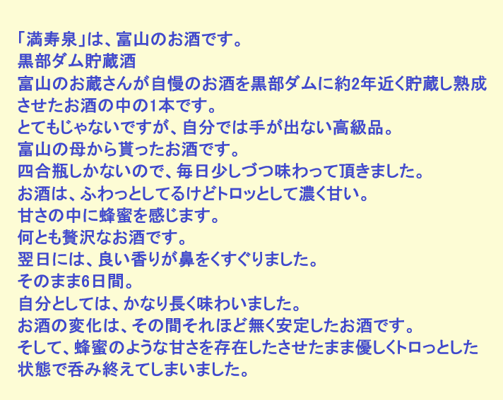 新しく開けたお酒:満寿泉(富山)
