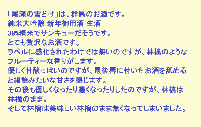 新しく開けたお酒:尾瀬の雪どけ(群馬)