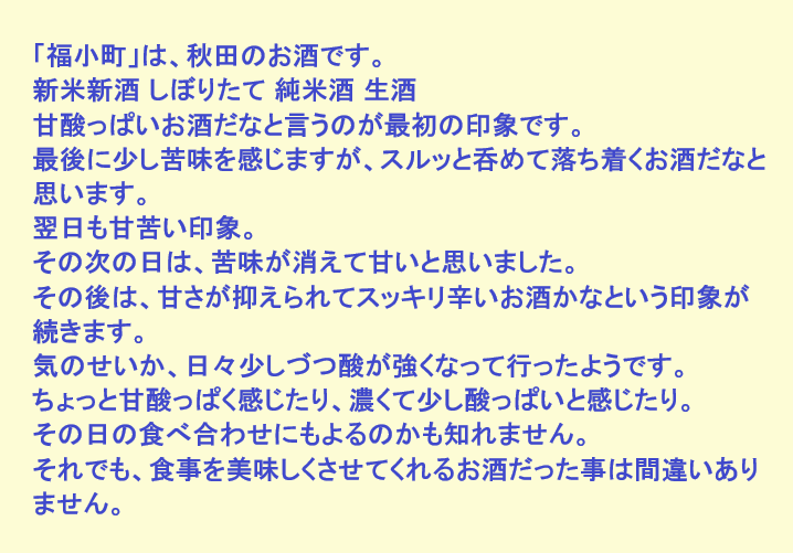 新しく開けたお酒:福小町(秋田)