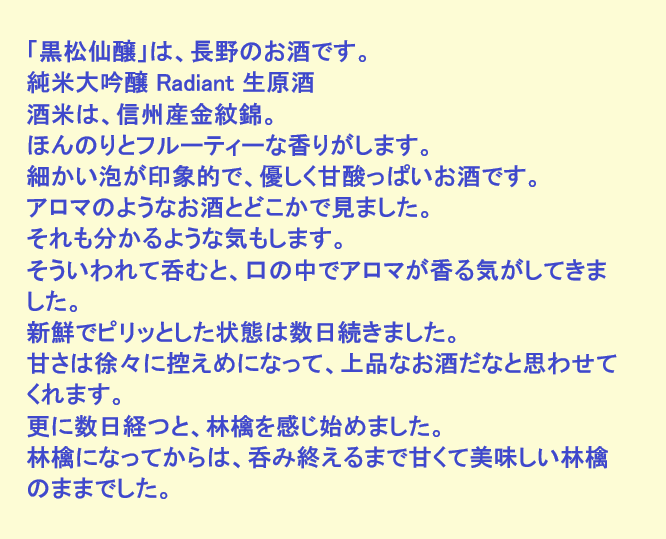 新しく開けたお酒:黒松仙醸(長野)