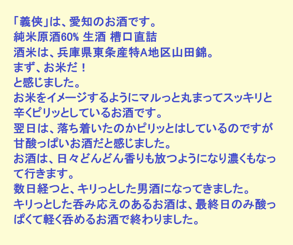 新しく開けたお酒:義侠(愛知)
