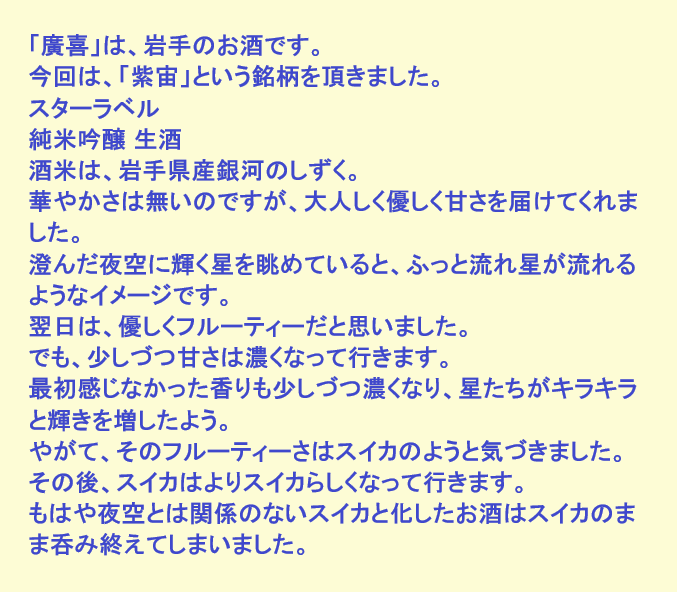 新しく開けたお酒:紫宙(岩手)