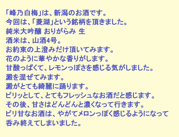 新しく開けたお酒:菱湖(新潟)