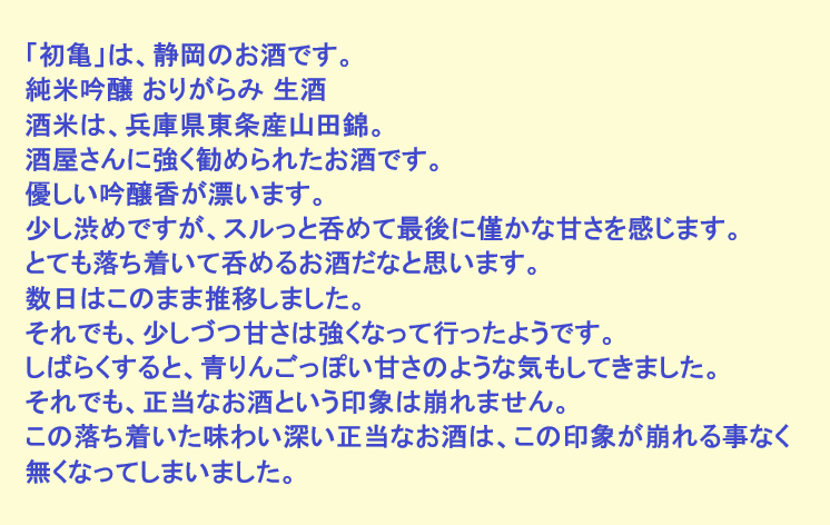 新しく開けたお酒:初亀(静岡)