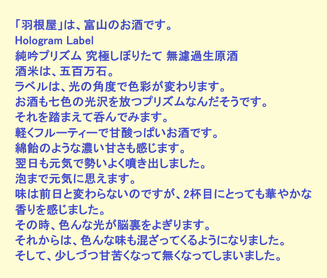 新しく開けたお酒:羽根屋(富山)