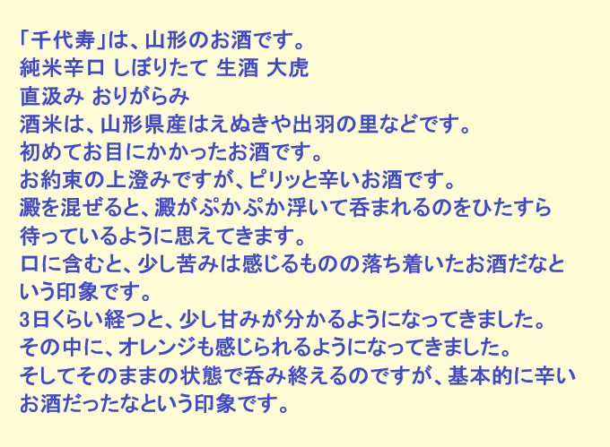 新しく開けたお酒:千代寿(山形)