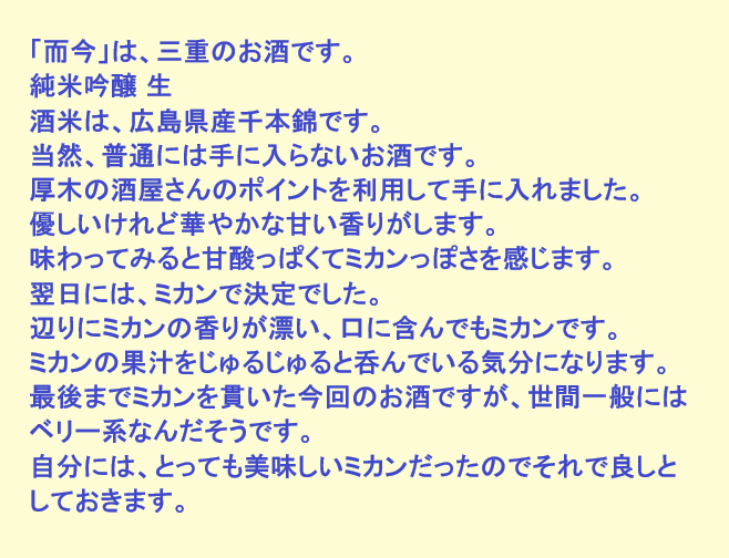 新しく開けたお酒:而今(三重)