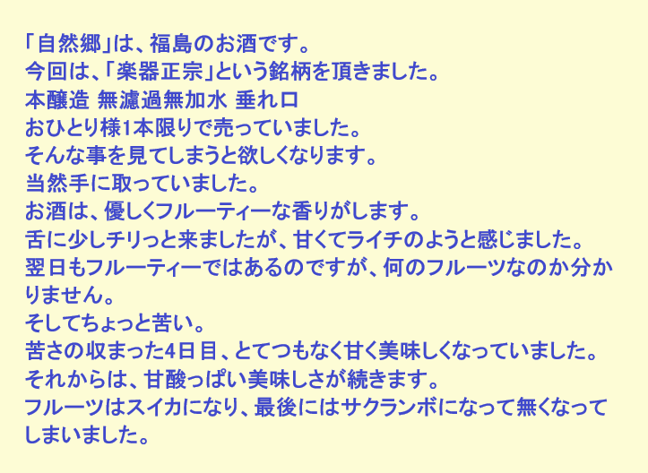 新しく開けたお酒:楽器正宗(福島)