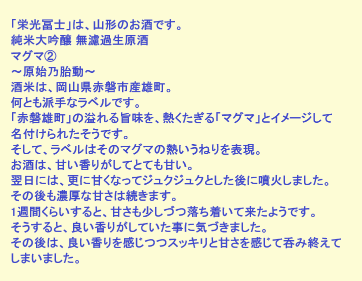 新しく開けたお酒:栄光冨士(山形)