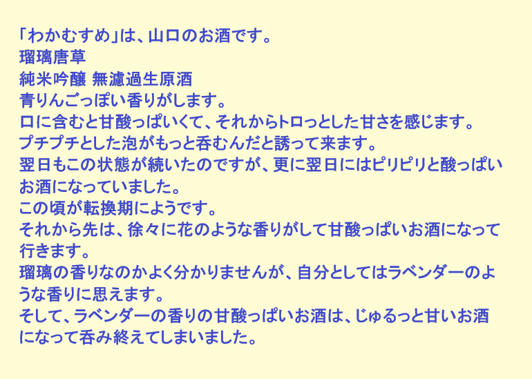 新しく開けたお酒:わかむすめ(山口)