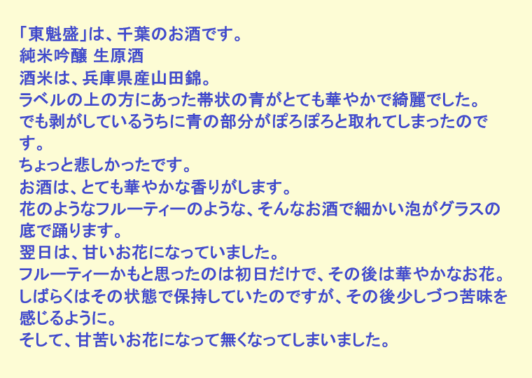 新しく開けたお酒:東魁盛(千葉)
