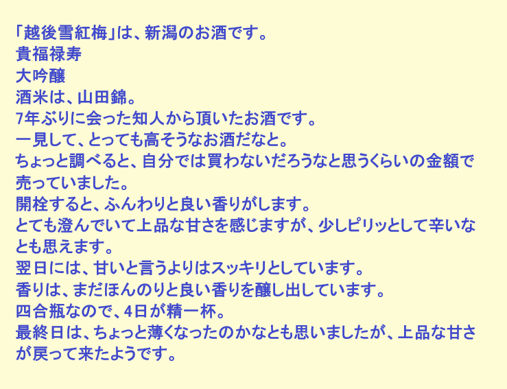新しく開けたお酒:雪紅梅(新潟)