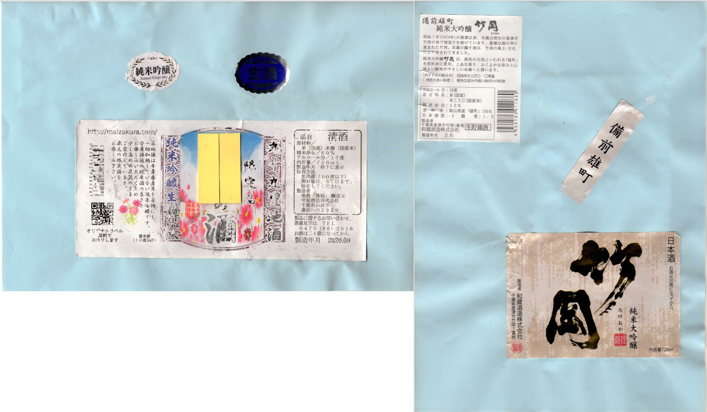 「酒の間」に守屋酒造「舞桜」ラベルと和蔵酒造「竹岡」ラベルを追加しました。