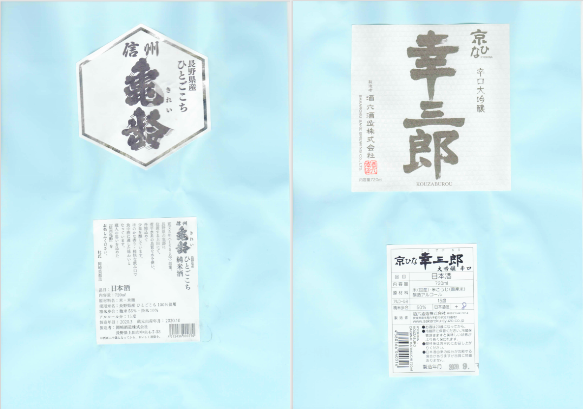 「酒の間」の岡崎酒造「信州亀齢」ラベルを追加、酒六酒造「京ひな」ラベルに追加しました。