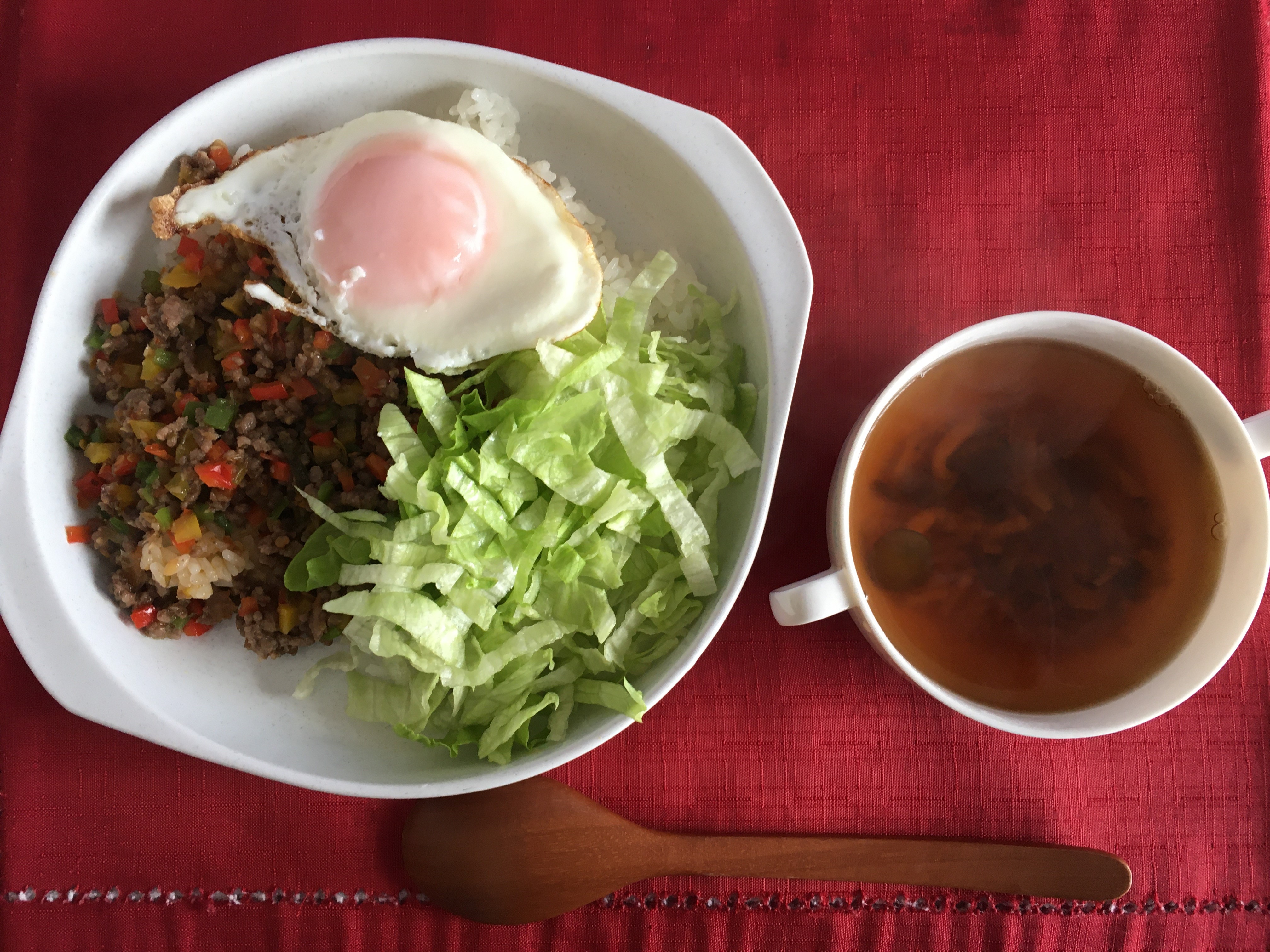 「ガパオライス」と「キノコのオイスターソーススープ」です。