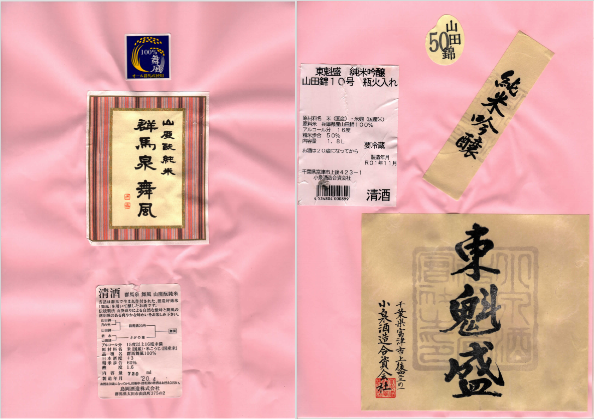 「酒の間」の島岡酒造「群馬泉」ラベルと小泉酒造「東魁盛」ラベルに追加しました。
