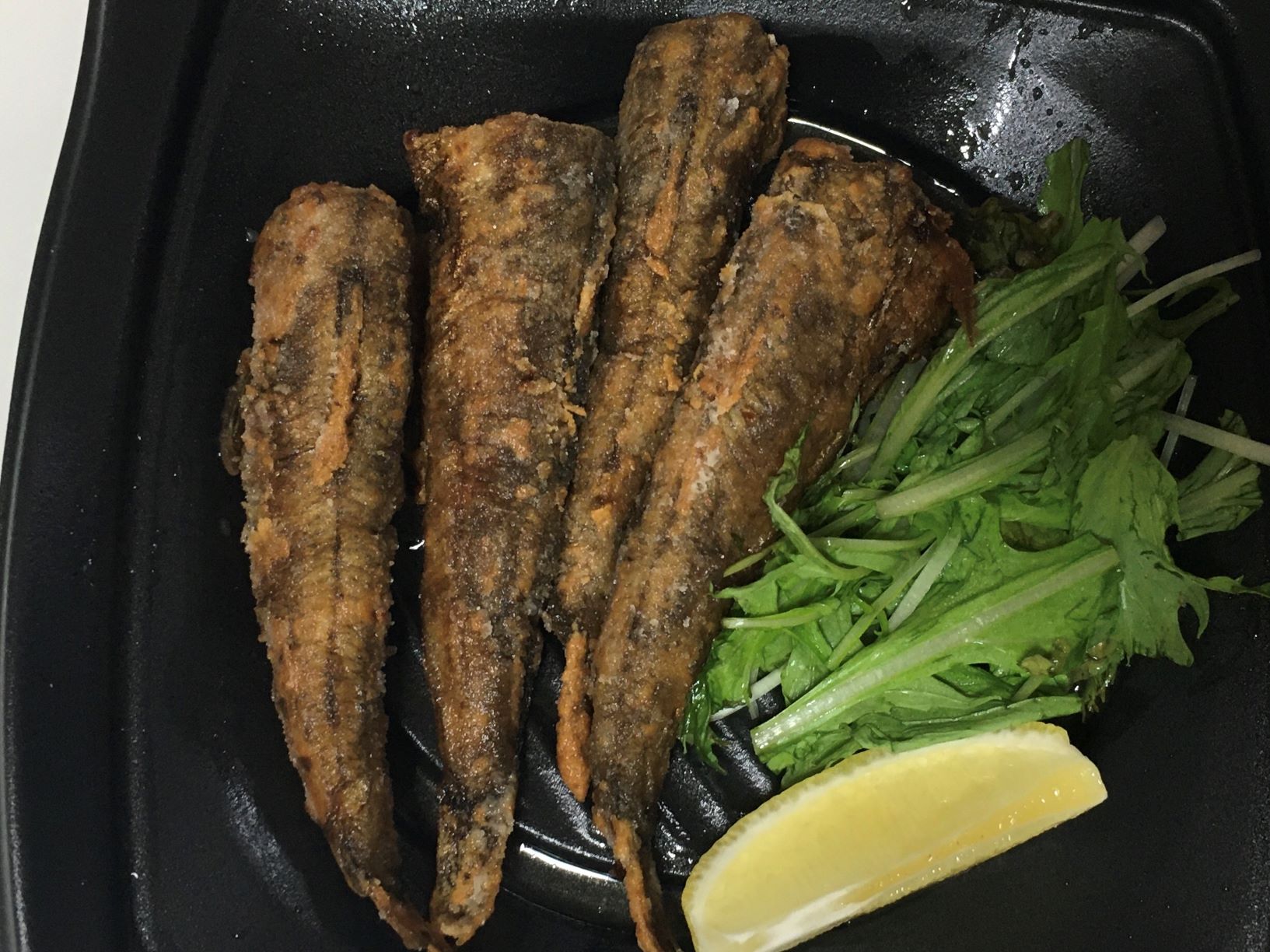 今回、メヒカリのから揚げも注文したのですが、中ふわっふわ!