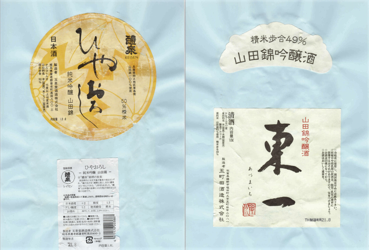 「酒の間」の玉泉堂酒造「醴泉」ラベルに追加、五町田酒造「東一」ラベルを追加しました。