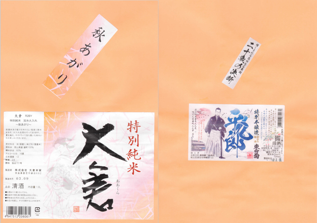 「酒の間」の大倉本家「大倉」ラベルと藤橋藤三郎商店「東白菊」ラベルに追加しました。