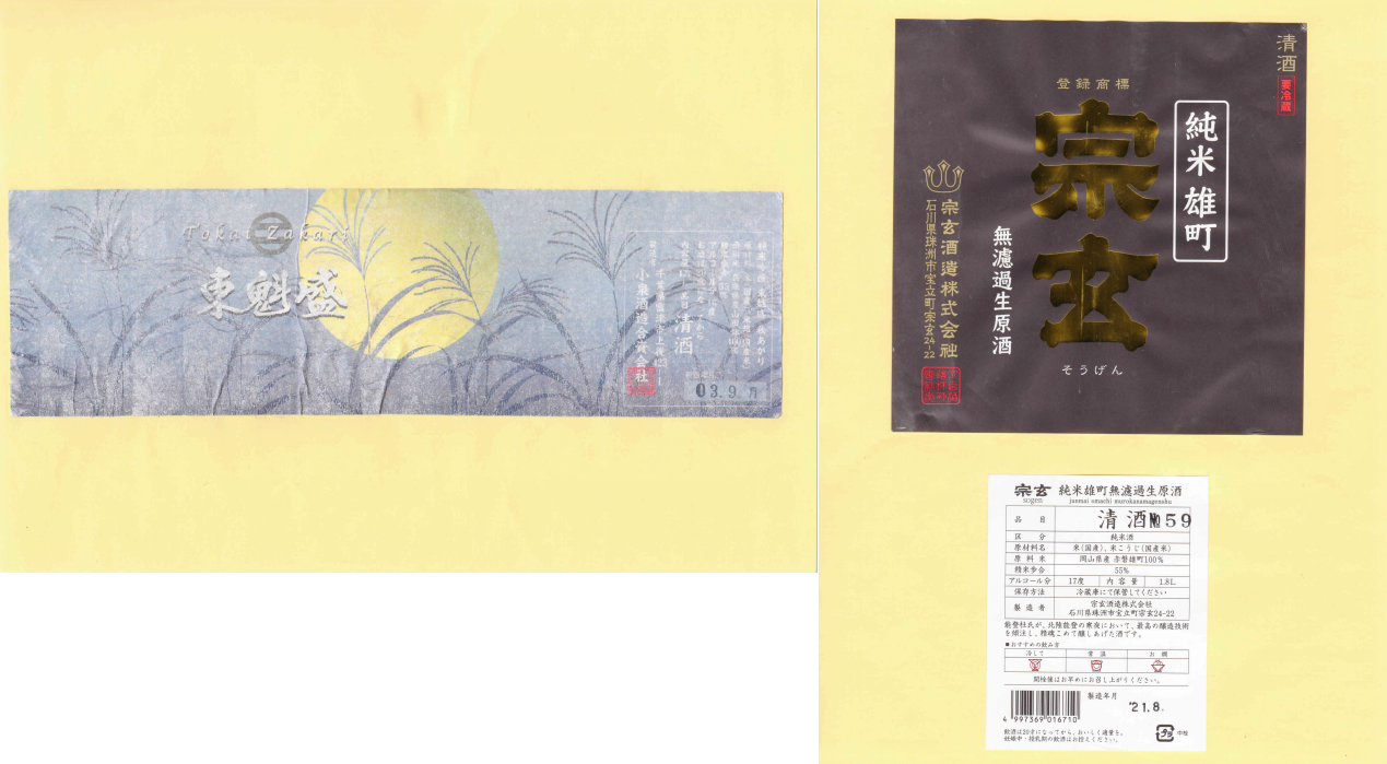 「酒の間」の小泉酒造「東魁盛」ラベルと宗玄酒造「宗玄」ラベルに追加しました。