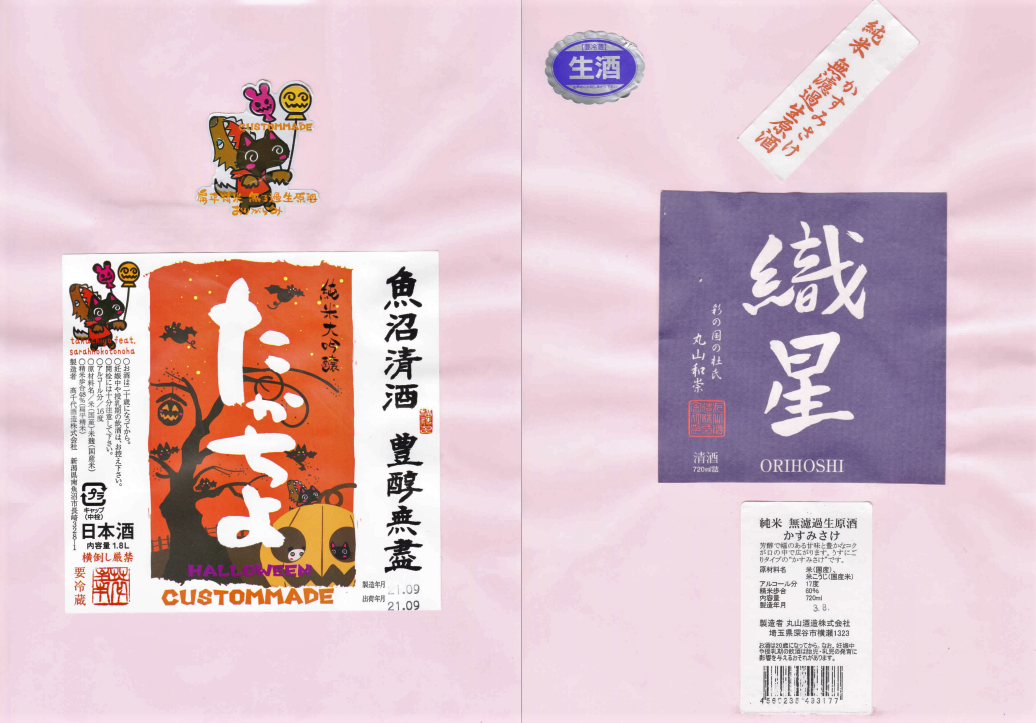「酒の間」の高千代酒造「たかちよ」ラベルと丸山酒造「金大星正宗」ラベルに追加しました。