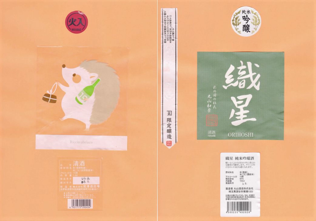 「酒の間」の尾澤酒造場「十九」ラベルと丸山酒造「金大星正宗」ラベルに追加しました。