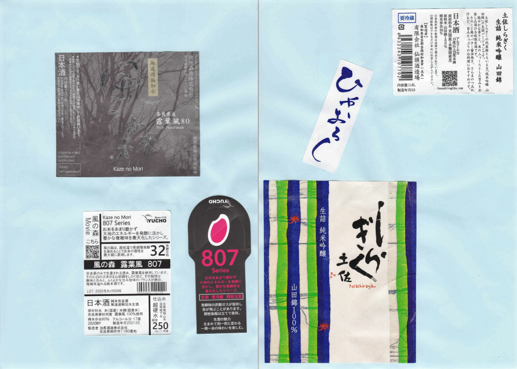 「酒の間」の油長酒造「風の森」ラベルと仙頭酒造「土佐しらぎく」ラベルを追加しました。