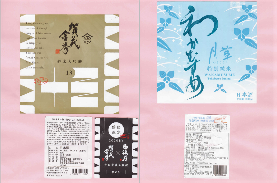 「酒の間」の金光酒造「賀茂金秀」ラベルと新谷酒造「わかむすめ」ラベルに追加しました。