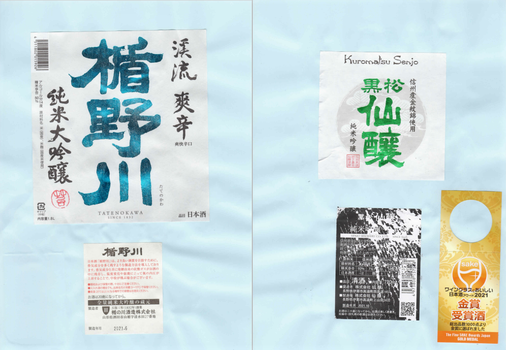 「酒の間」の楯の川酒造「楯野川」ラベルに追加、仙醸「黒松仙醸」ラベルを追加しました。