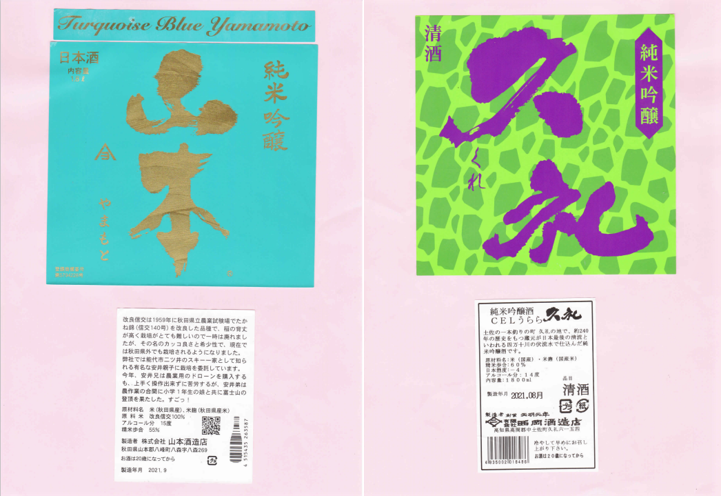 「酒の間」の山本酒造店「山本」ラベルと西岡酒造店「久礼」ラベルに追加しました。