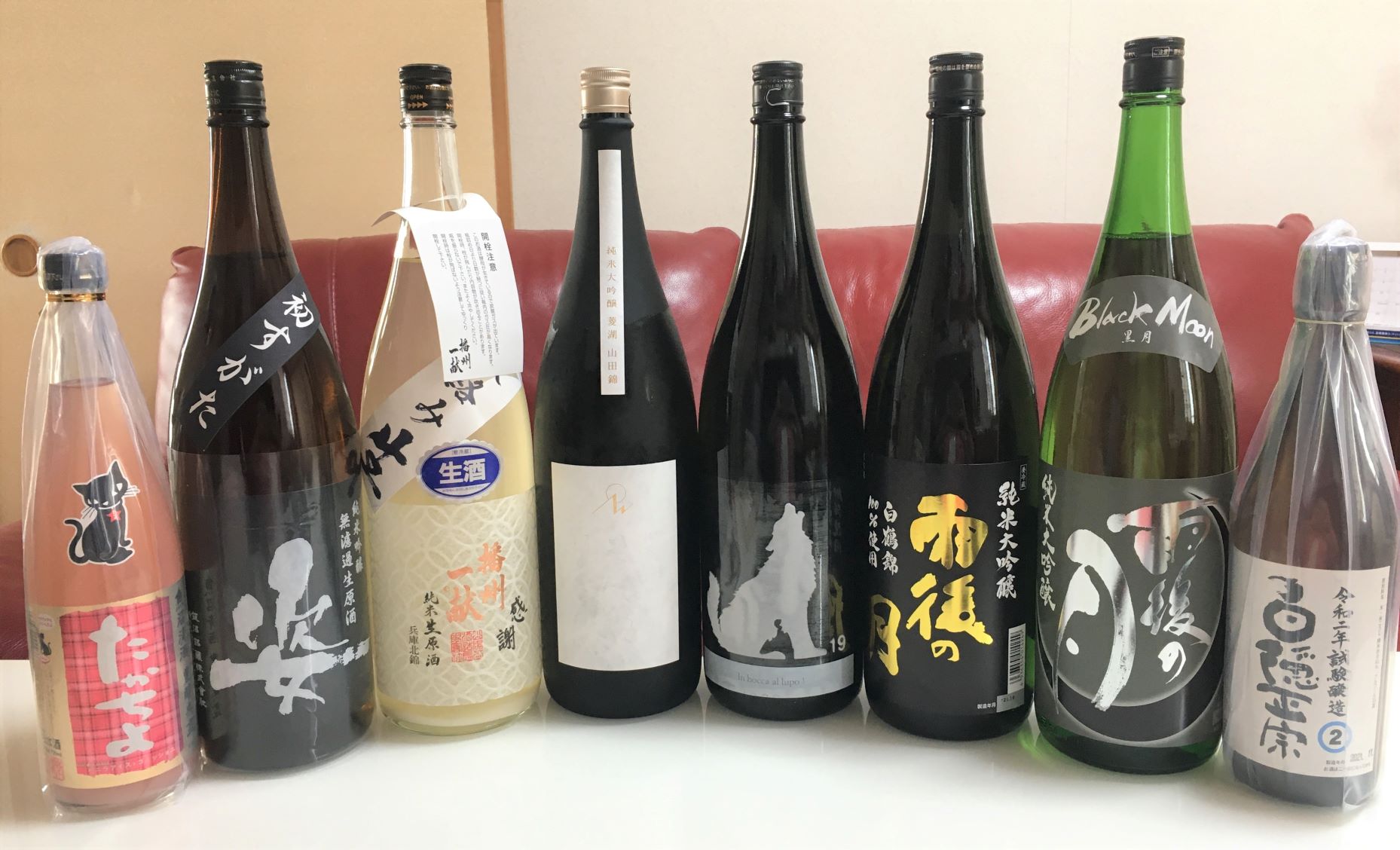 ※左から たかちよ・姿・播州一献・菱湖・十九・雨後の月×2・白隠正宗