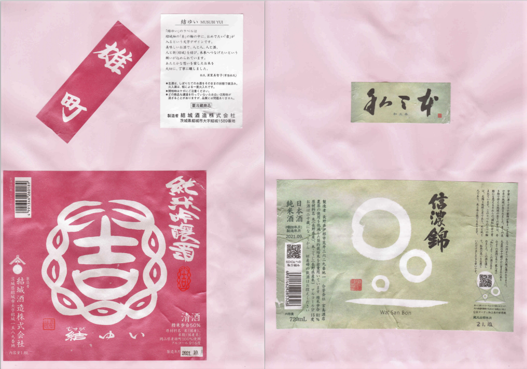 「酒の間」の結城酒造「結ゆい」ラベルと宮島酒店「信濃錦」ラベルに追加しました。