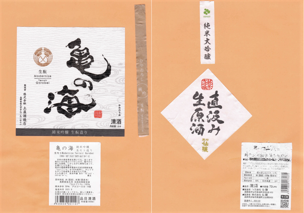 「酒の間」の土屋酒造店「亀の海」ラベルと仙醸「黒松仙醸」ラベルに追加しました。