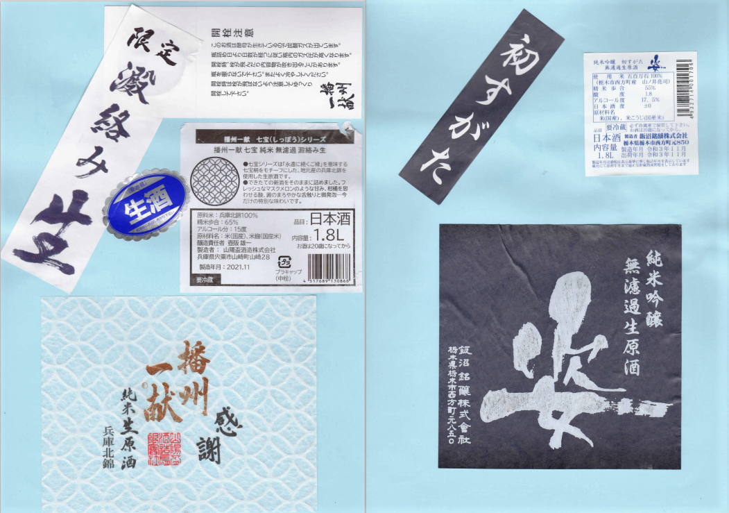 「酒の間」の山陽盃酒造「播州一献」ラベルと飯沼醸造「姿」ラベルに追加しました。