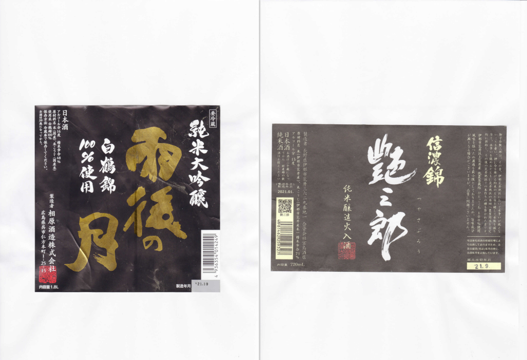 「酒の間」の相原酒造「雨後の月」ラベルと宮島酒店「信濃錦」ラベルに追加しました。