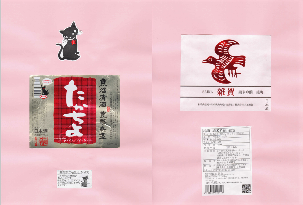 「酒の間」の高千代酒造「たかちよ」ラベルと九重雑賀「雑賀」ラベルに追加しました。