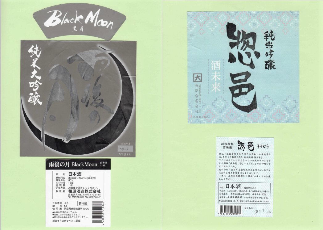 「酒の間」の相原酒造「雨後の月」ラベルと長沼「惣邑」ラベルに追加しました。