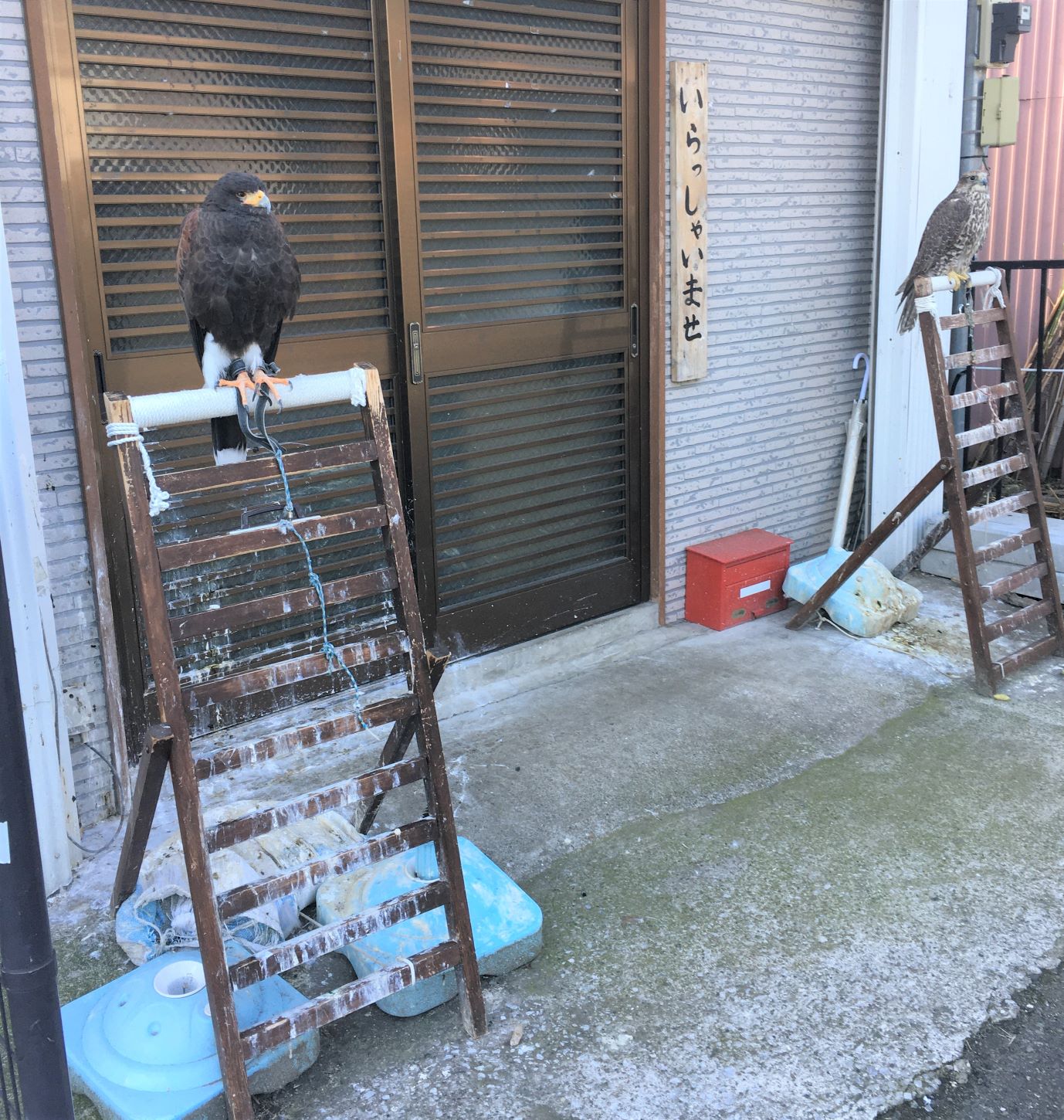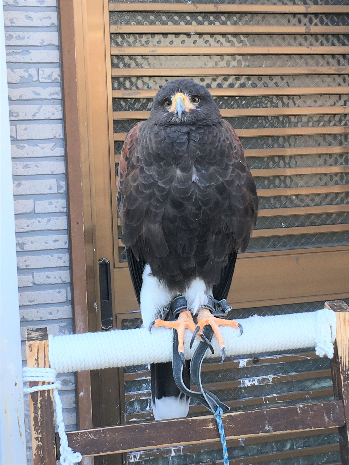 お出迎えしているのは本物の鷹(鷲かも)です。