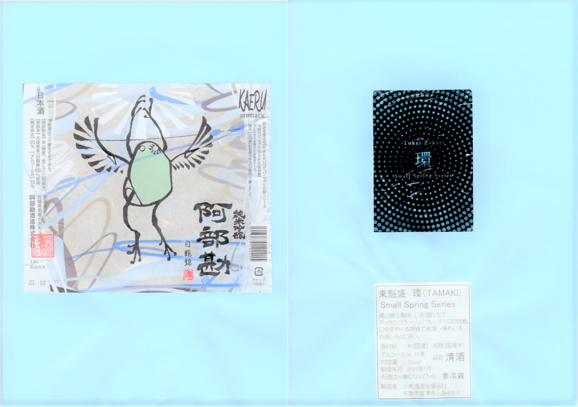 「酒の間」の阿部勘酒造「阿部勘」ラベルと小泉酒造「東魁盛」ラベルに追加しました。