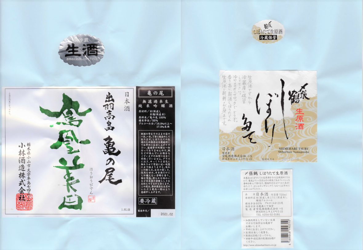「酒の間」の小林酒造「鳳凰美田」ラベルと宮尾酒造「〆張鶴」ラベルに追加しました。
