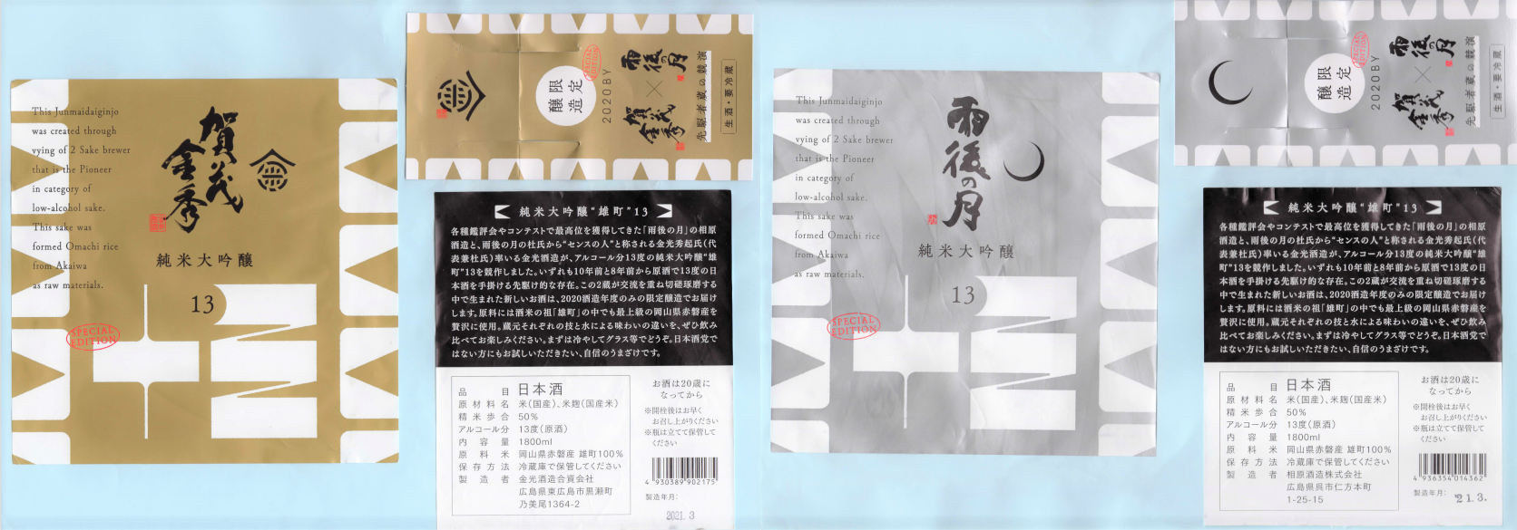 「酒の間」の金光酒造「賀茂金秀」ラベルと相原酒造「雨後の月」ラベルに追加しました。